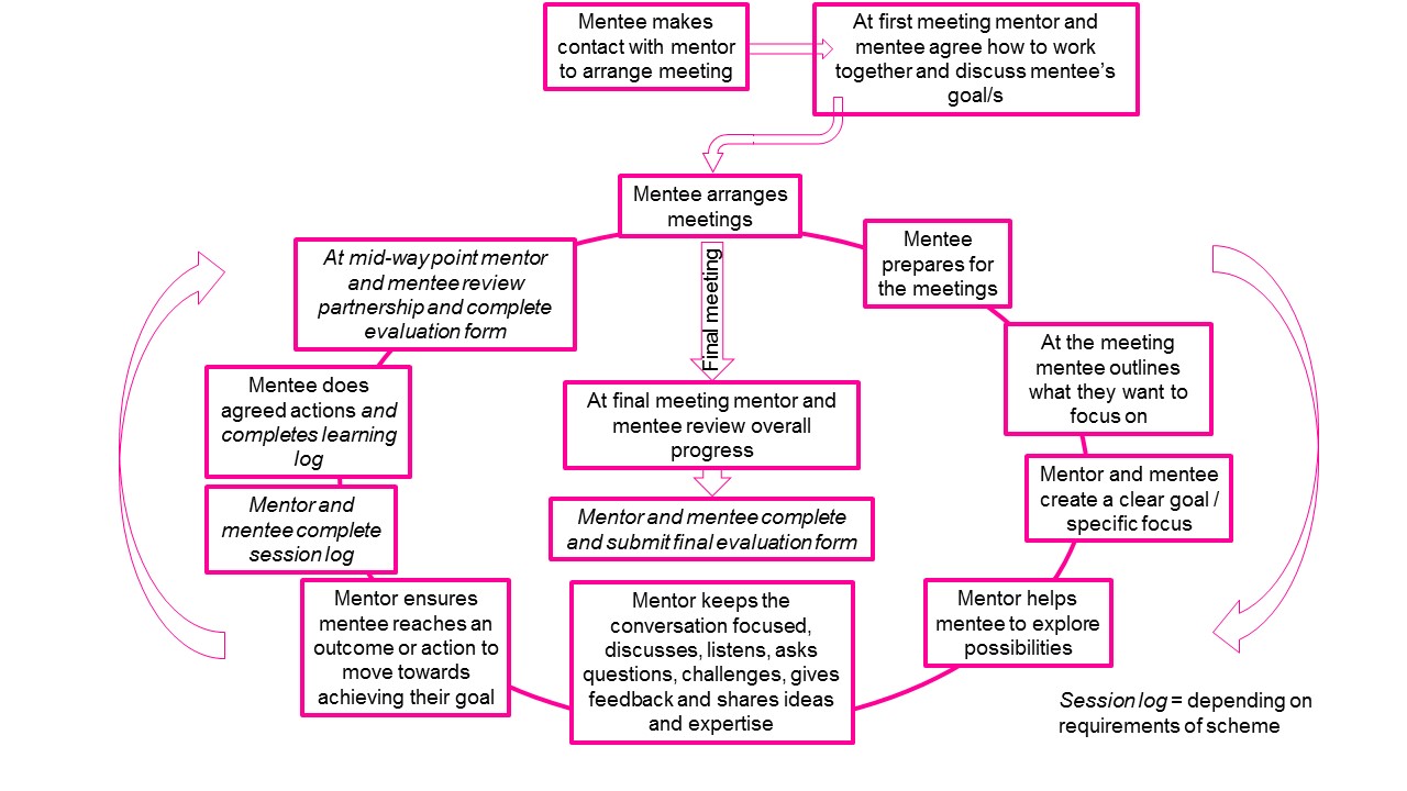 Below you will find a longer guide and a shorter briefing about what mentoring is all about, what to expect and what is expected of you. The ‘sessions flow’ document illustrates how you can structure the mentoring conversations. Use the session log template to record what was discussed and agreed in the session. Use the action plan template to formalise the actions the mentee will do between sessions. If as a mentor you ever feel you are not able to help your mentee, you may find the information in ‘great mentors do not need all the answers’ useful.