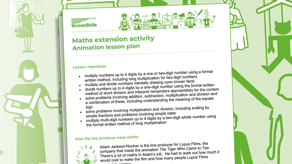 The maths extension activity meets Key Stage 2 learning objectives and can be taught in an hour. It's based on the maths done by Adam, when he was producing The Tiger Who Came to Tea. How many artists made The Tiger Who Came to Tea and how many cups of tea did they drink?