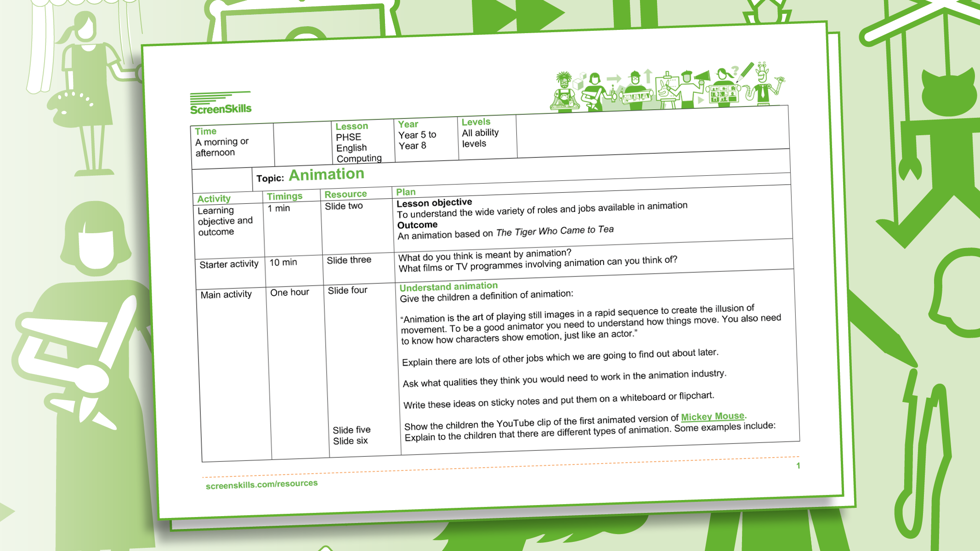 This is a detailed plan of the lesson that can be taught in three hours or as a six-week project, depending on the ambition of the animation being produced. It's designed to be used with the lesson slides and the project book. The lesson can also be extended with maths and science activities.